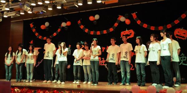 在万圣节party环节,热闹的小鬼、可爱的南瓜、酷炫的cosplay、欢快的兔子舞、给力的抢麦大赛使得全场在短时间内沸腾起来,调动了在座各位新同学的参与其中的愿望。