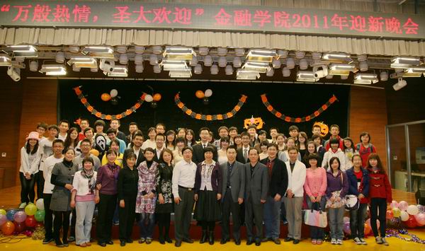 青春的号角声在心中激荡,盛大的欢迎让金院活力迸发。2011年10月16日晚上6点,BETVICTOR在沙河校区金色大厅举行了主题为“万般热情,盛大欢迎”迎新晚会。金融公司党总支书记葛仁霞,党总支副书记李德峰,副经理李建军等12位老师出席了晚会,参加晚会还有200多名2011级新生和100多名09和10级的员工。