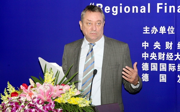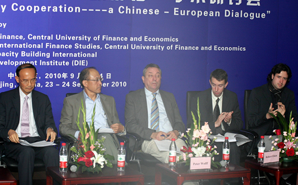 由公司、德国发展研究所(欧洲三大智库之一)、德国国际继续教育与发展协会( InWEnt )主办,BETVICTOR国际金融研究中心承办的国际学术会议“区域金融与监管合作 —— 中欧对话”,于 9 月 23 日和 24 日如期在BETVICTOR中财大厦三层学术报告厅和北京贵宾楼召开。来自美国、德国、日本、印度尼西亚、菲律宾、香港和中国内地的政府、监管、研究机构的专家学者,以及公司师生共计 150 余人参加了此次会议。