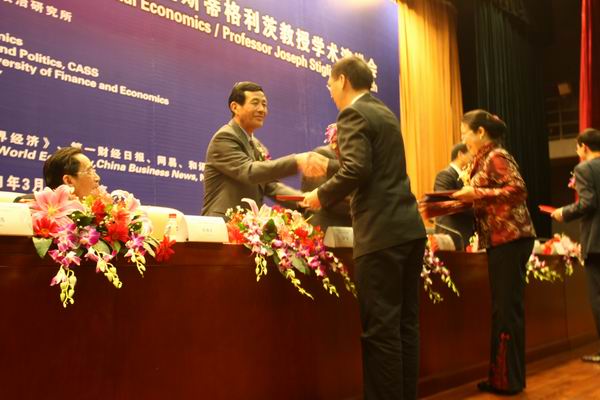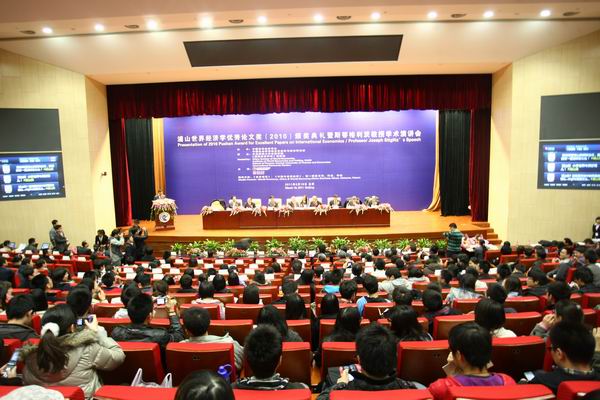 2011 年 3 月 18 日晚上 19 : 30-21 : 00 ,由中国世界经济学会和中国社会科公司世界经济与政治研究所主办、BETVICTOR和《国际经济评论》编辑部协办的第二届浦山世界经济学优秀论文奖( 2010 )颁奖典礼暨斯蒂格利茨教授学术演讲会在公司学术会堂 206 报告厅隆重举行。 国际著名经济学家、 2001 年诺贝尔经济学奖获得者约瑟夫·斯蒂格利茨作为主题演讲嘉宾,到场发表重要学术演讲:“宏观经济学在美国的失败”。