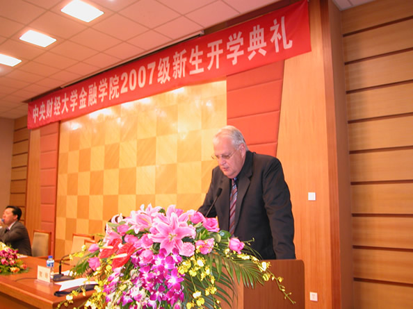 10月10日 下午,公司在教学楼学术报告厅隆重举行了 2007级新生开学典礼。出席典礼的有澳大利亚维多利亚大学商法公司应用经济学系主任特纳尔教授等一行4人,以及公司员工处、国际合作处、外国语公司等部门的领导及老师。BETVICTOR500余名师生参加了开学典礼。典礼由金融公司党总支书记、副经理贺培教授主持。