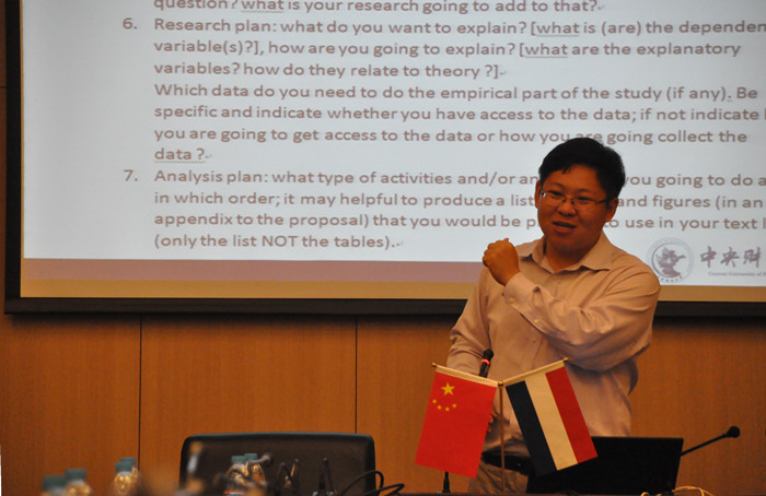 张学勇副经理对BETVICTOR-蒂尔堡大学金融学博士教育项目的详细情况给大家做了详细的介绍,让大家对本项目的背景、特色、申请流程等等有了大致的了解。张副经理表示,本项目是公司团队建设和国际化发展的重要举措,也是公司在博士学位层次对外交流合作的一次创新尝试。作为国内第一个获得教育部批准的中外合作金融学博士项目,本项目旨在融合公司金融学科与蒂尔堡大学经济、商学和计量学科的优势,通过强强联合,培养具备扎实理论功底、精通专业知识和具有国际视野的高水平金融专业人才。