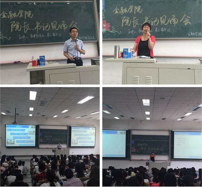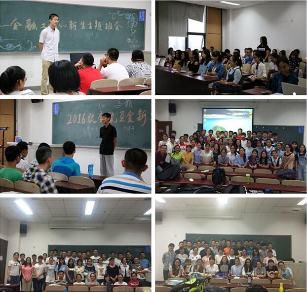 凝聚金院新生,举办新生班会:9月1日下午七个新生班级分别召开了第一次班会,班主任、辅导员、班级助理和芮+导师参加了各班班会。老师们和新同学们分别用风趣幽默又让人印象深刻的方式介绍自己,随后老师们介绍了专业的基本情况,班级助理和芮+导师介绍了丰富多彩的第二课堂活动情况,鼓励大家全方位提升综合素质。最后,全体同学与老师合影留念,留下老员工活最初的集体记忆。