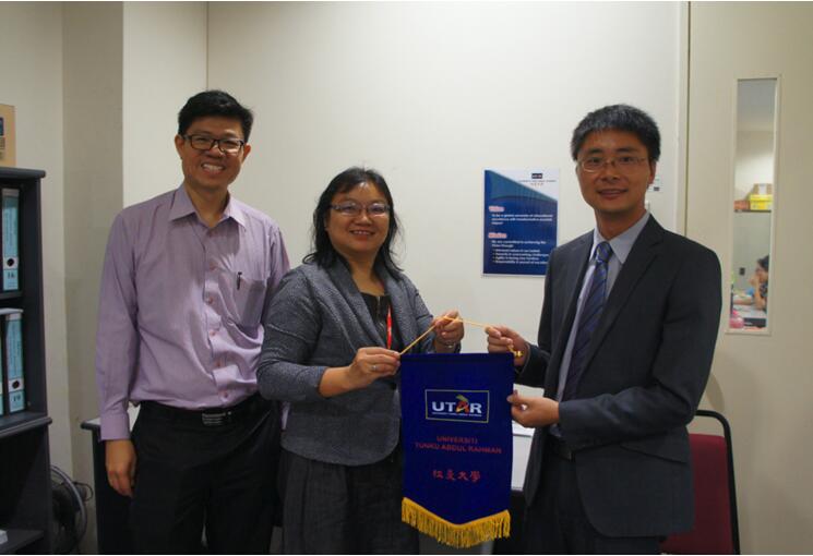 马来西亚拉曼大学欧阳慧妮经理向调研组赠送校旗