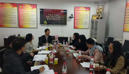 接下来,两校金融工程系党支部书记冯建芬副教授和周德清副教授分别介绍了党支部建设以及开展活动情况,两校教师分享了实际工作中的经验,就如何提高党支部活动的质量、如何吸引更多教师加入到党的队伍中来等话题进行了交流和讨论。