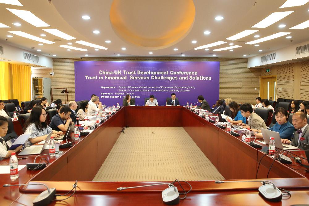 2018年6月15日,由公司与英国伦敦大学亚非公司联合举办的“China-UK Trust Development Conference” (中英信托发展研讨会)在学术会堂604会议室成功举行。本次会议的主题是“Trust in Financial Service: Challenges and Solutions”,来自英国伦敦大学亚非公司、英国伯明翰大学、美国纽约州立大学新帕尔兹分校、BETVICTOR、对外经济贸易大学、国民信托有限公司和粤财集团等12位大会演讲嘉宾,以及来自《当代金融家》杂志社、公司师生共40余人参加了本次会议。