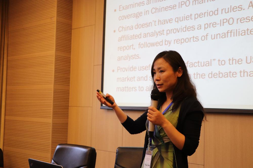 高昊宇助理教授的演讲主题是“法律的强制执行对金融风险有影响吗?来自中国战略违约的例子”。文章指出由于现实中金融市场的不完善,法律的强制执行影响着法律惩罚的成本,能一定程度上约束欺诈、违约等行为,因此可能会对金融风险也产生影响。基于对中国战略违约的调查和研究,文章发现:第一,有证据表明,信用市场中存在着战略违约;第二,法律的强制执行降低了不完善融资市场上出现战略违约的可能性;第三,市场的不完善会加剧法律强制执行对金融风险的影响。李晓助理教授对该论文进行了点评,在简要梳理该文章框架的基础上,肯定了该论文的研究意义。她指出该研究将法律和金融方面的研究结合在一起,提出了可靠的经验证据并采用了独特的数据,十分值得研究学习。同时,她还就文章可能存在的内生性问题(为什么客户选择违约)、法律执行指数的影响因子、战略违约导致的后果以及战略违约和流动性违约的对比方面与高昊宇助理教授进行了探讨。