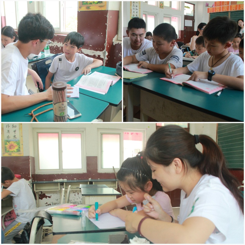 团队成员正在认真辅导小营员功课