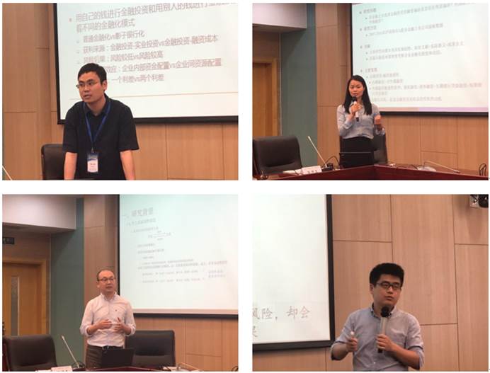 刘冲老师的演讲主题是“按下“葫芦”浮起“瓢”:严格的监管者与影子银行扩张”,他的研究构建理论模型分析了不同来源的监管者通过监管执行强度影响影子银行扩张,而后实证检验了理论模型的推论,研究结果发现地方监管者风险监管更加严格。严格的监管者尽管能够有效控制表内风险,却会产生刺激银行扩张影子银行业务的结果。随后刘冲老师与到场的老师和同学们针对文章的理论模型展开了积极热烈的讨论。