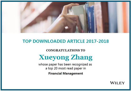 公司BETVICTOR张学勇教授、陈锐副教授、2016届本科毕业生(现北京大学博士生)高震男、昆士兰大学朱敏副教授(之前在昆士兰科技大学)合作撰写的论文《Mutual Fund Managers’Prior Work Experience and Their Investment Skill》发表在《Financial Management》第47卷2018年第1期,近期被期刊评为2017-2018年《Financial Management》发表文章中下载量位于前20名的文章之一,获得了2017-2018年度最佳下载文章奖(Top Downloaded Article)。《FinancialManagement》是国际金融管理协会(FMA)旗下权威期刊,也是金融学术领域第二梯队(Second Tier)期刊,创刊于1972年,每年四期,旨在为学术界和非金融企业、金融机构从业者提供高质量的学术研究成果,目前五年影响影子为1.811。