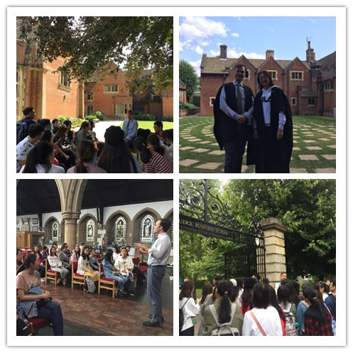 8月5日,来到剑桥的第一个早晨,同学们比预定时间稍早到达集合的地点,在剑桥大学Muller教授的带领下,参观走访了King’sCollege, Judge Business School等著名院系,了解剑桥的历史,感受剑桥的人文底蕴。午后,坐在St Giles Church中,John为同学们讲述剑桥的风景名胜和文化风情。面对留存至今的古老塑像、石柱,同学们就好像亲眼见证了英格兰从古至今一步一步的发展足迹。从StGiles Church出来不远,就是WestminsterCollege,在这里John与同学们一一合照,并解答关于剑桥和英国的诸多疑问。Vincent教授也在这里与同学们讨论了实在主义经济学与形式主义经济学。他从一个国际化的角度为我们介绍了世界各国的文化差异和由此引起的做事风格的不同,让我们有胜读十年书的感觉。
