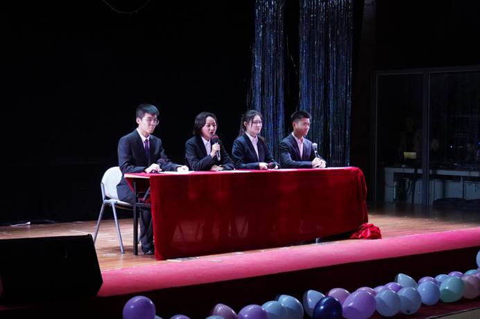 上半场的节目告一段落,随后现场进行了抽奖活动。金融公司党委委员李俊峰为大家揭晓了部分奖项,师生同乐,台上台下一片欢声笑语。