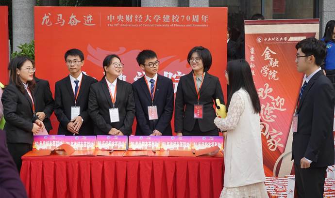 七十华诞,岁月如歌。中财大迎来了她七十岁的生日。欢声笑语充盈着校园,到处都是喜庆的红色。准备已久的展板、精心布置的会场都在盼望着嘉宾的前来。同学们的呐喊、合唱团的赞歌、宴席上举杯共庆都洋溢着对中财大的祝福。