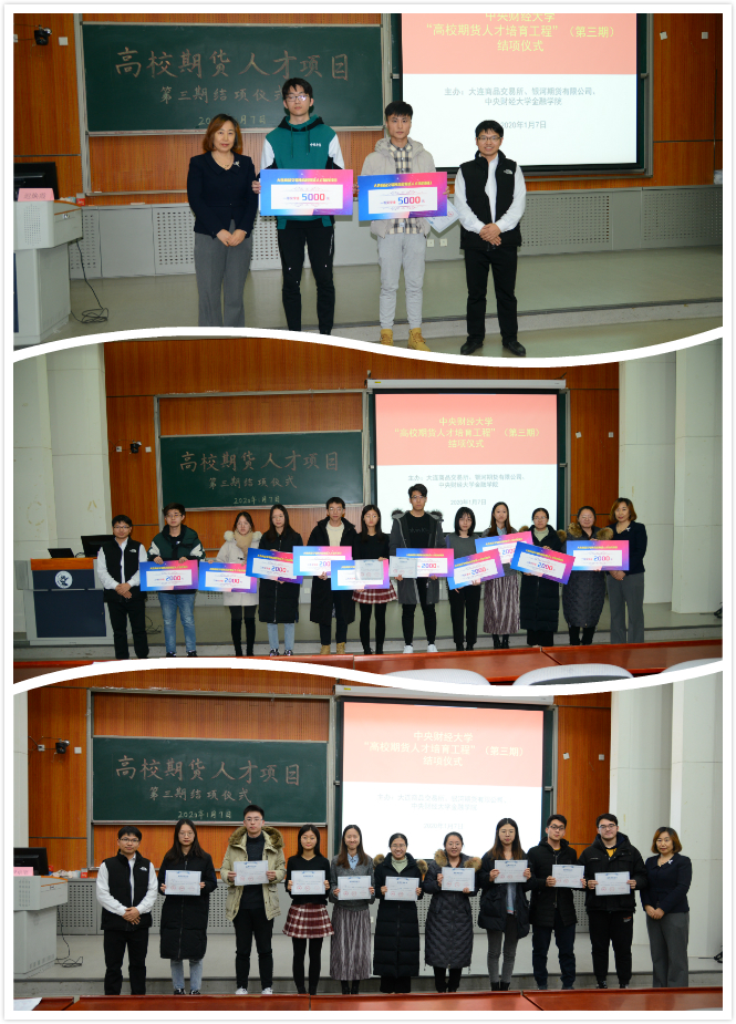 2020年1月7日下午,公司与大连商品交易所、银河期货有限公司共同主办的“高校期货人才培育工程项目”(第三期)在沙河校区公司4号楼107报告厅圆满落下帷幕。银河期货有限公司培训部总监迟焕霞女士和全体期货班同学出席了项目结业仪式。结业仪式由BETVICTOR教学科研办公室主任罗卓笔老师主持。