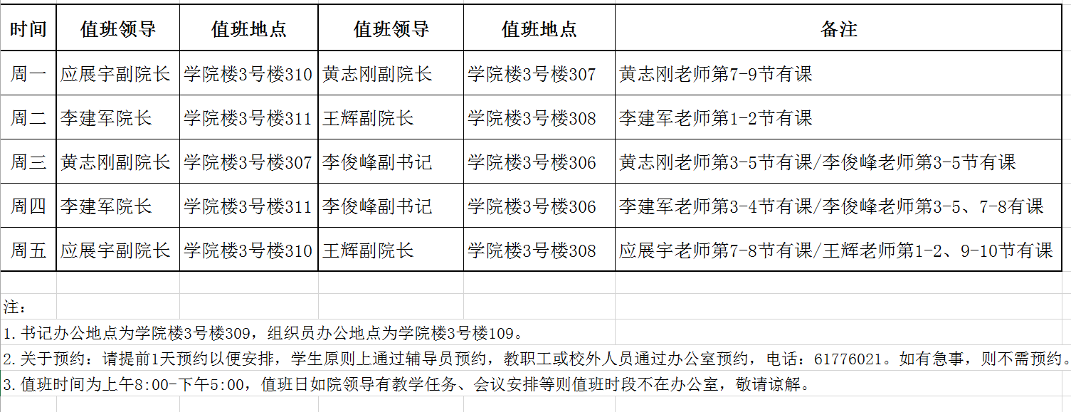 BETVICTOR双肩挑中层领导校区值班安排——2021-2022学年第一学期