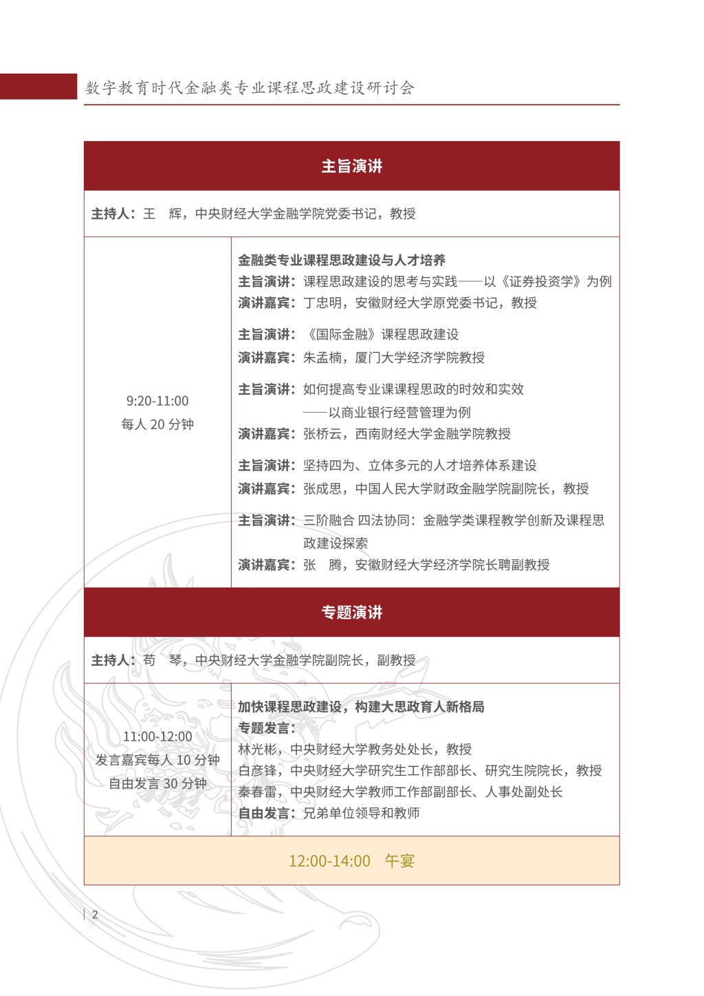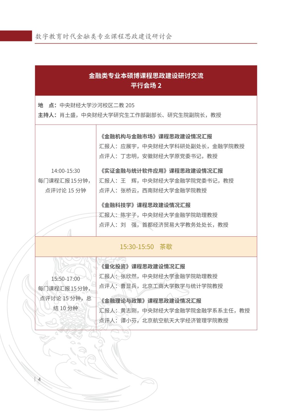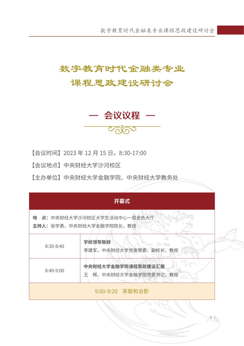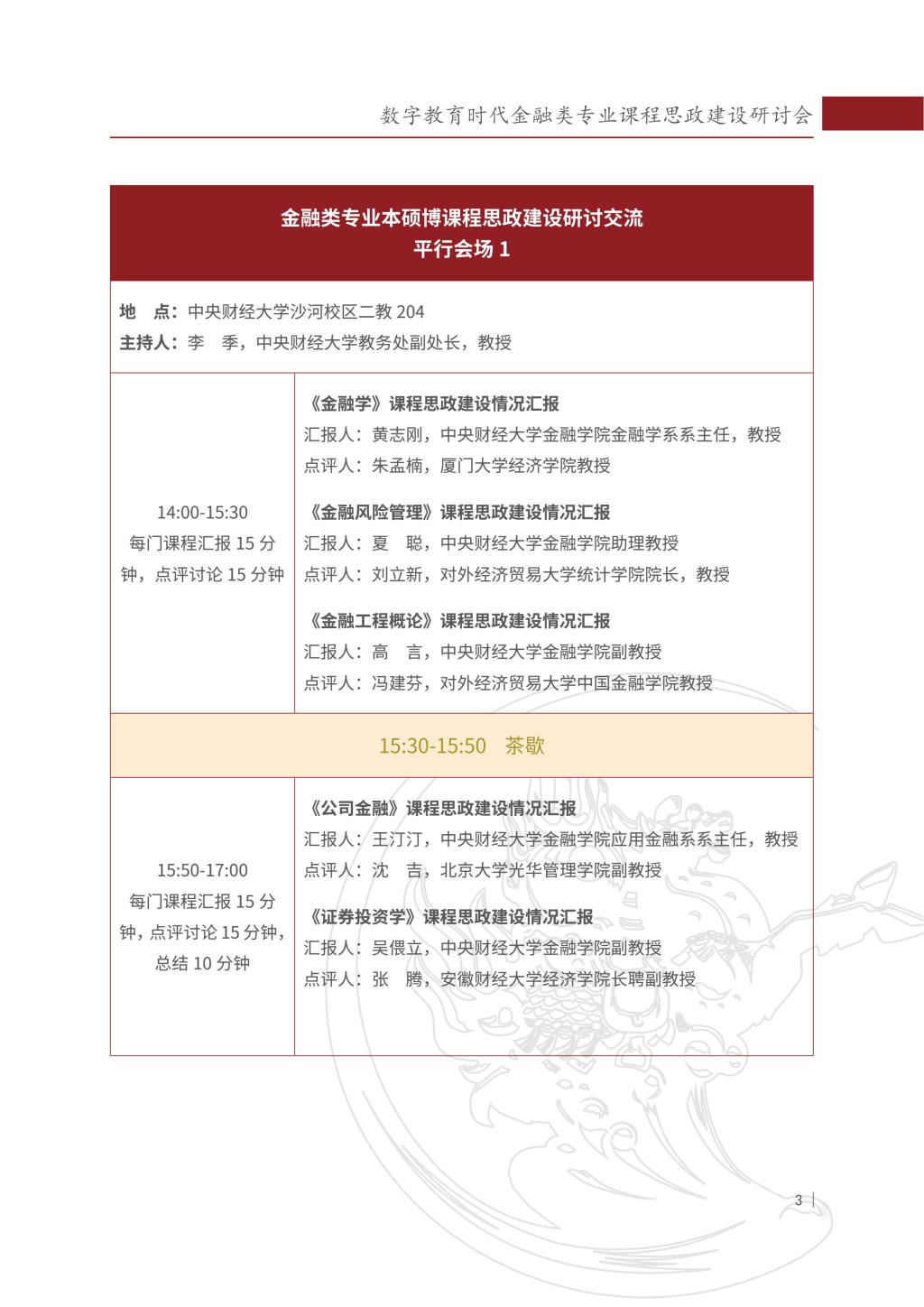 数字教育时代金融类专业课程思政建设研讨会会议议程