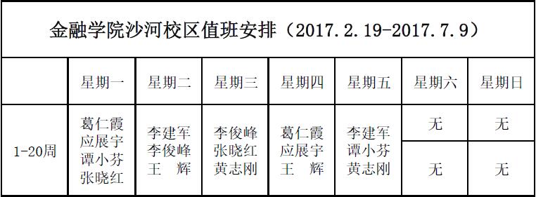 BETVICTOR沙河校区值班安排(2017.2.19-2017.7.9)