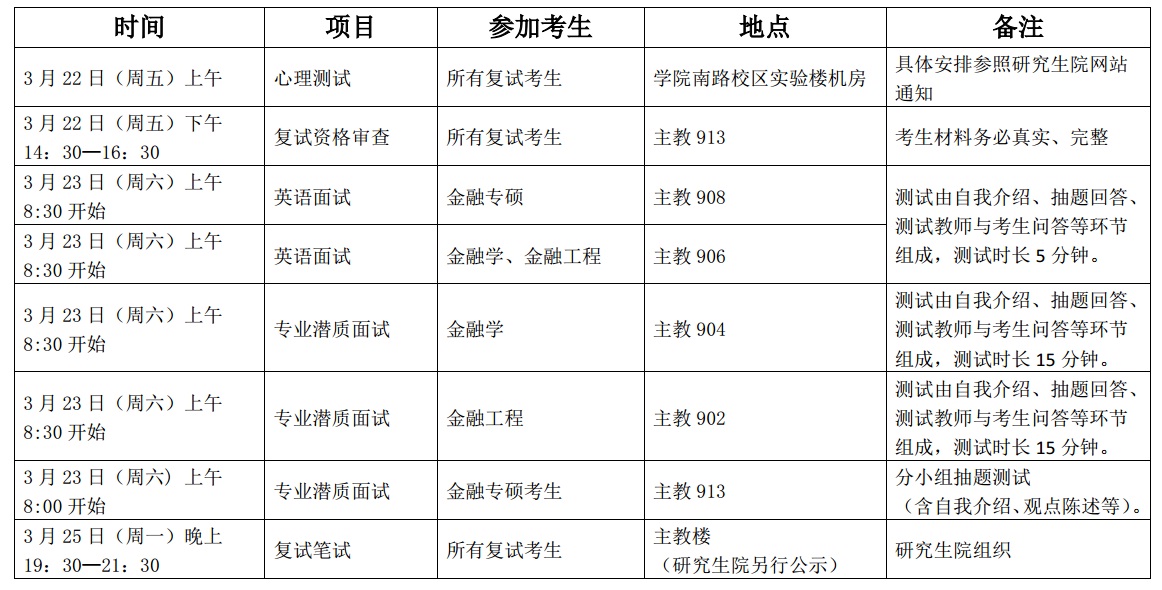 3.复试顺序将在开考前公布,候考室为主教910;
