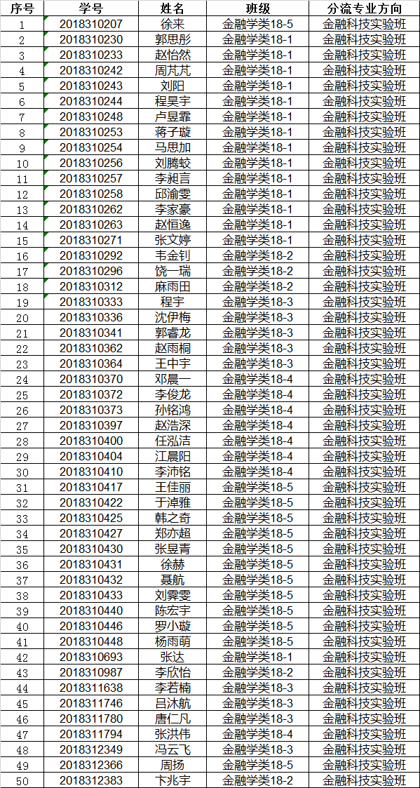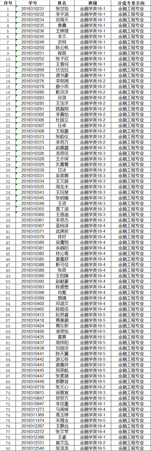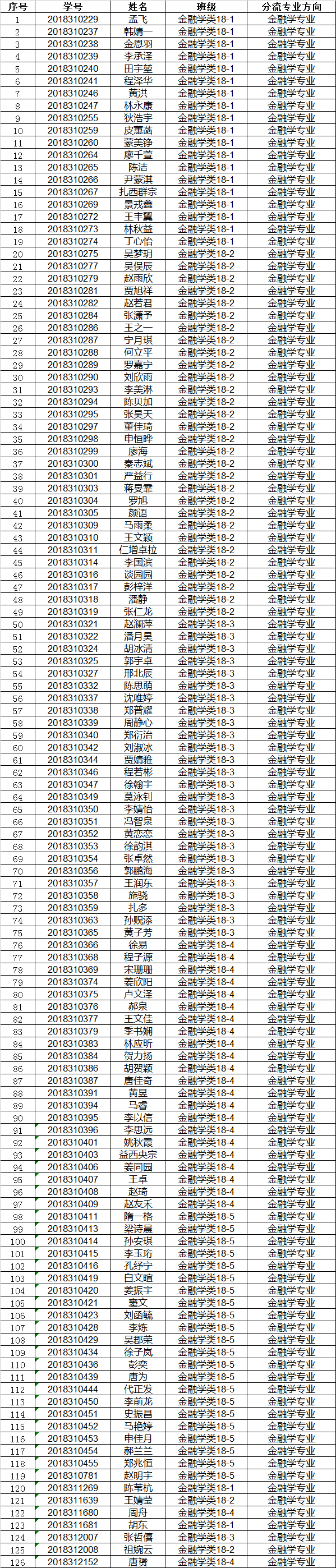 根据2018级金融学类本科生专业分流方案,公司组织开展了2018级金融学类本科生专业分流工作。现将专业分流结果公示如下: