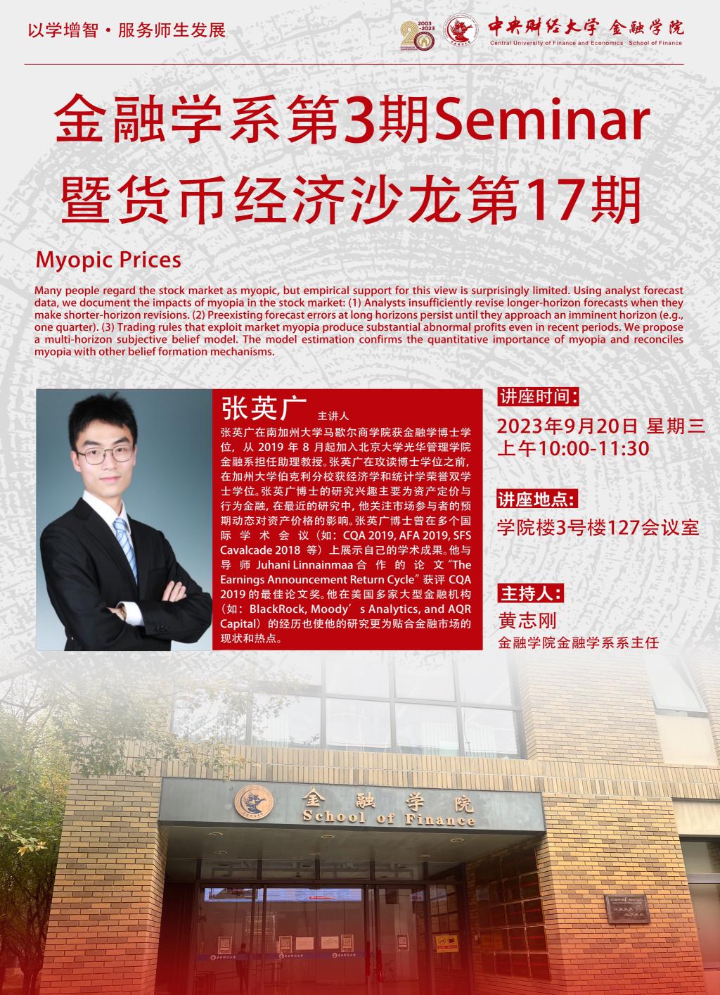 张英广 | 金融学系第3期Seminar暨货币经济沙龙第17期