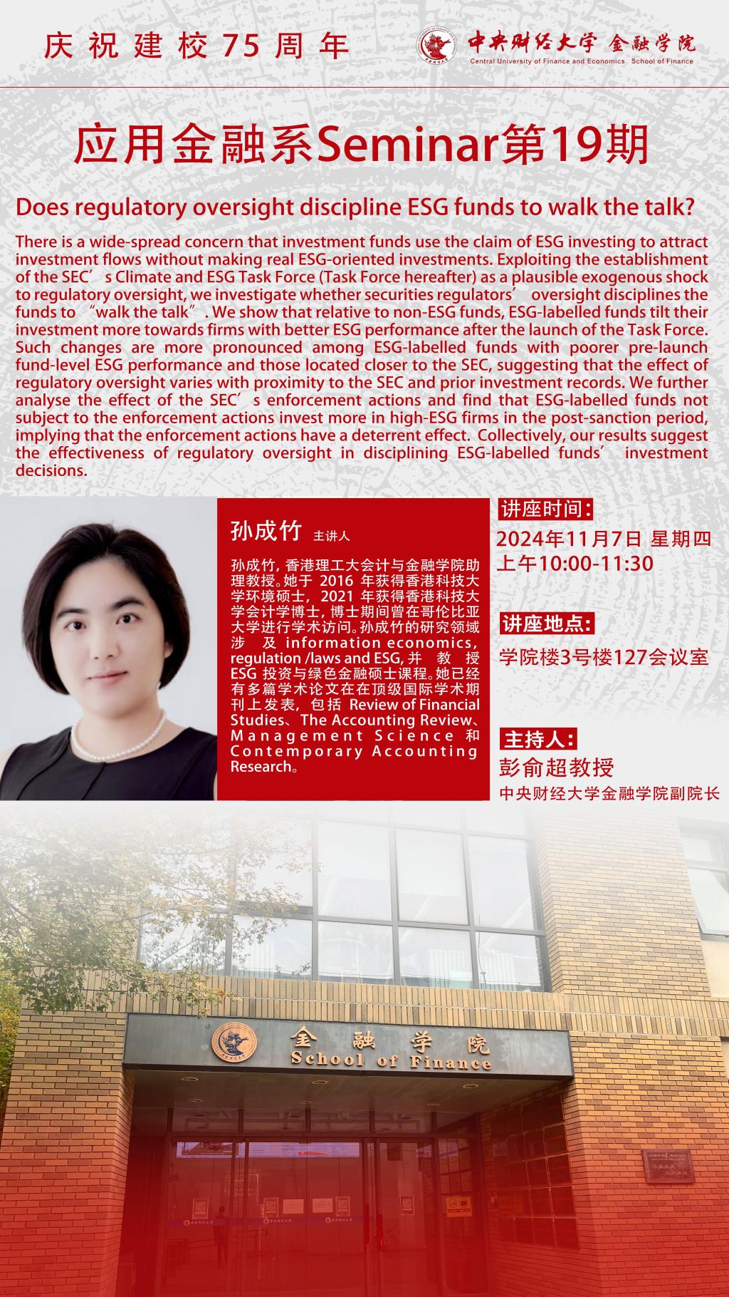 孙成竹 | 应用金融系Seminar第19期