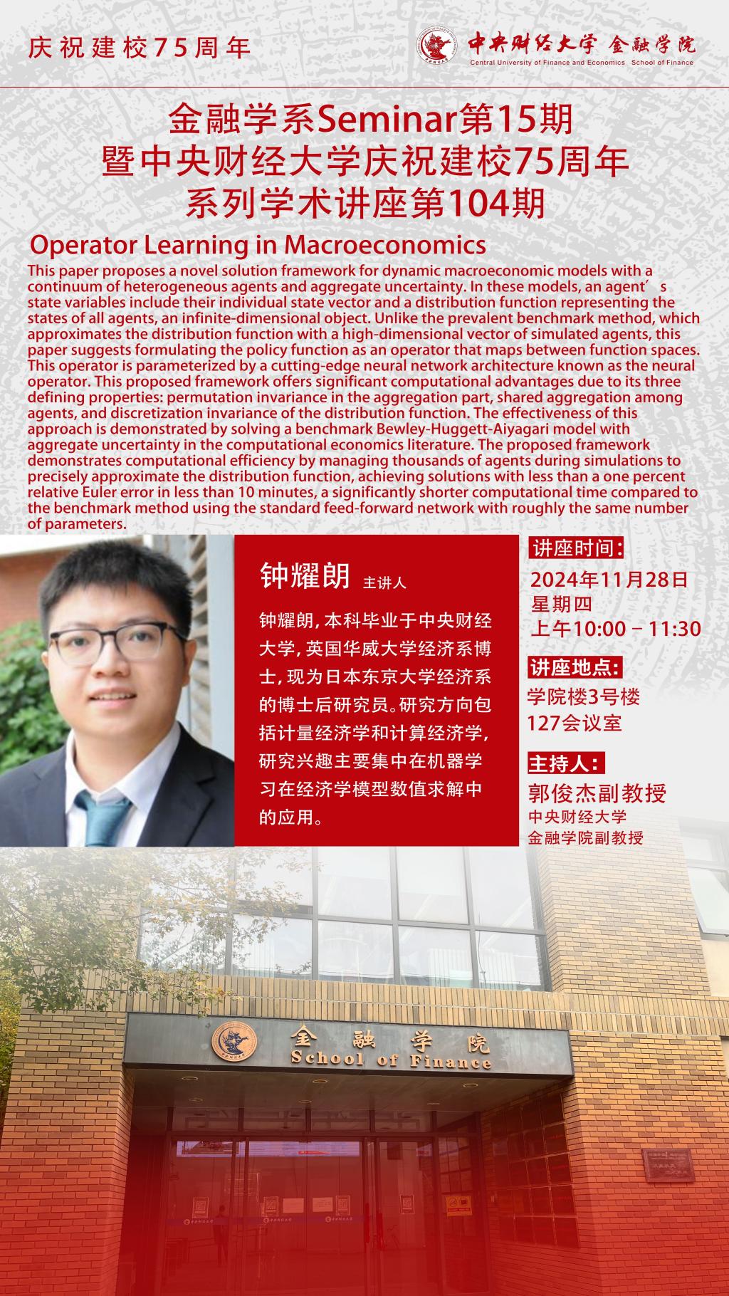 钟耀朗 | 金融学系Seminar第15期暨BETVICTOR庆祝建校75周年系列学术讲座第104期