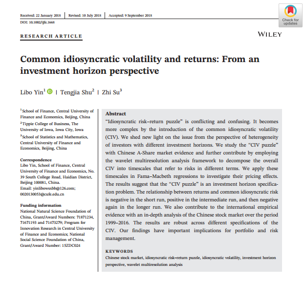 尹力博、苏治:Common idiosyncratic volatility and returns: From an investment horizon