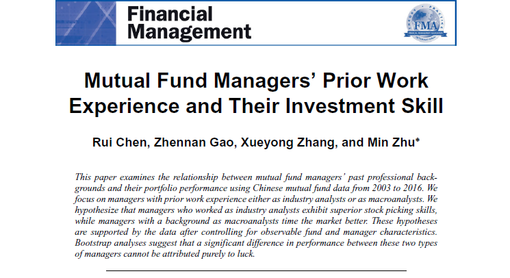 张学勇:Mutual Fund Managers’ Prior Working Experience and Their Investment Skills