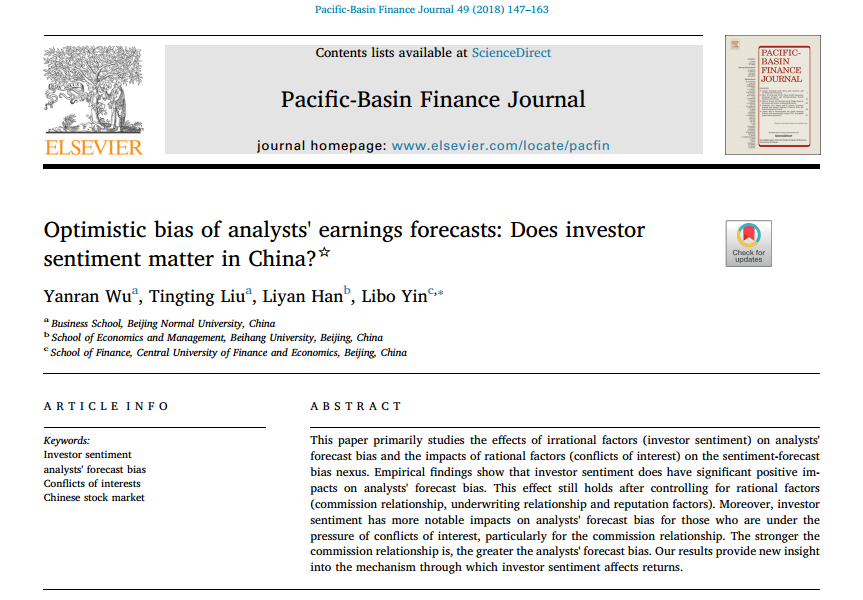 尹力博:Optimistic bias of analysts' earnings forecasts Does investor sentiment matter in China