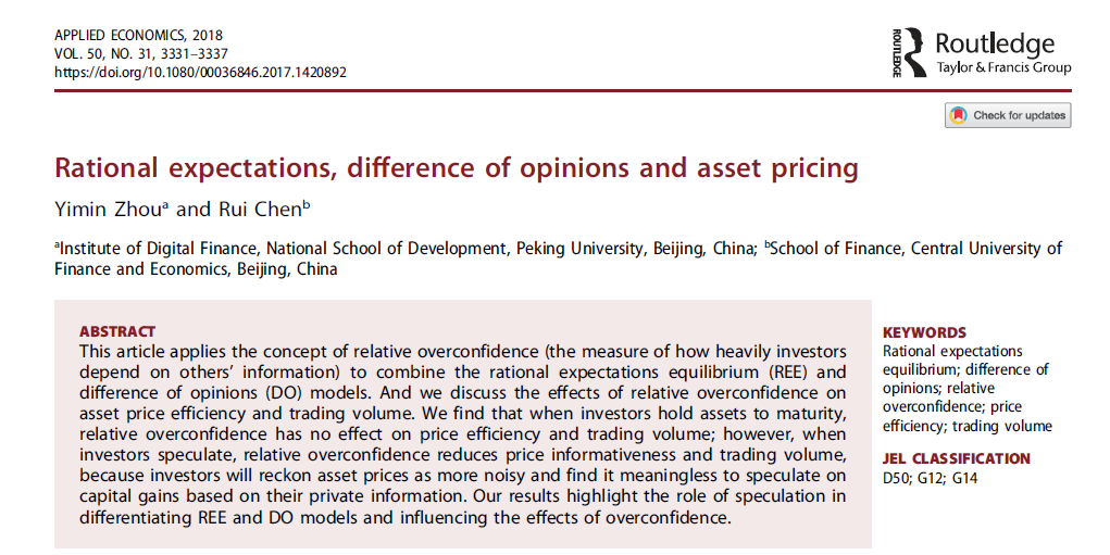 陈锐:Rational expectations, difference of opinions and asset pricing