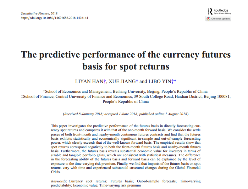 尹力博:The predictive performance of the currency futures basis for spot returns