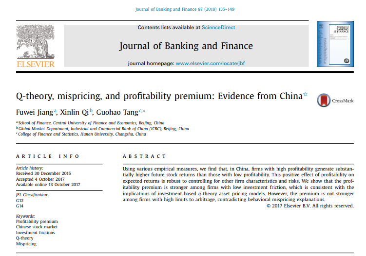 姜富伟:Q-theory, mispricing, and profitability premium: Evidence from China