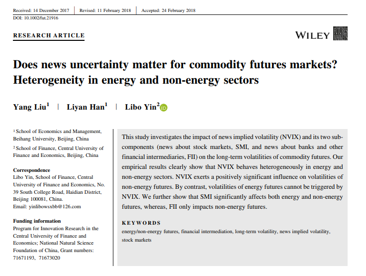 尹力博:Does news uncertainty matter for commodity futures markets? Heterogeneity in energy and non-energy sectors