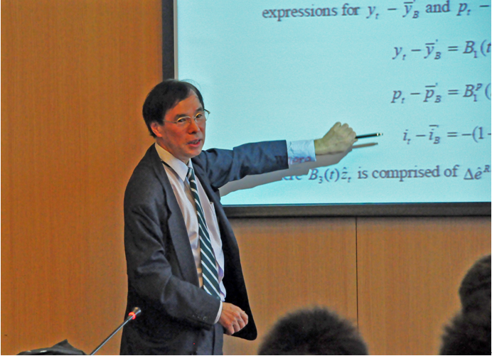 吉野直行教授围绕中国自2005年以来汇率和汇率制度的变迁开始了演讲。他通过量化比较中国可以采取的五种汇率策略。通过比较认为,从盯住美元逐步渐进得向盯住一篮子货币的汇率制度转变对于人民币汇率制度而言是最优的策略,突然转变是次优策略。他对上述结论做了详细解释。他认为,在逐渐转变地过程中,货币当局通过调整资本管制与一篮子货币权重,可以有效降低汇率波动给产出带来的影响;而突然转变成为浮动汇率制度是不理想的,因为一国货币当局在突然转变的短暂过程中无法通过调整货币供给减缓出口波动对产出的影响。