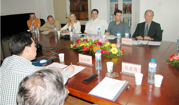 在张经理热情的欢迎致辞后, Alfred Steinherr 教授首先对美国经济衰退和美元贬值对中国经济以及欧洲经济的影响做了近半小时的发言,他分析了中国的资本市场对中国经济的贡献以及对人民币升值的看法。之后,中方专家各自发言,从银行业和资本市场等角度详细地分析了中国经济形势,让来访学者对中国经济有了更深刻和更直接的了解,也使到场的研究生同学们受益匪浅。论坛进行到最后,卢森堡大学的 MBA 员工简单介绍了他们此次访华的目的是通过访问多家中国研究机构和企业以获得更多的关于中国经济的现状和发展方向的信息。