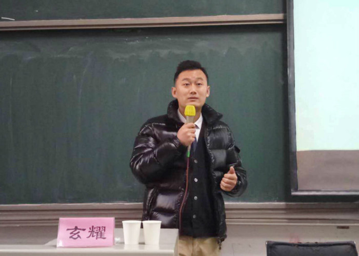 黄志刚老师主持讲座及同学们认真倾听玄耀先生分享经验