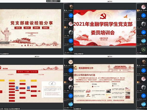 2021年11月4日上午,为有效加强员工党支部特别是新成立党支部的建设规范,深入推进党史学习教育,金融公司党委线上召开员工党支部委员培训会。公司党委书记毛静、组织员张晓红及部分党务老师出席会议,全体员工党支部书记、委员参加会议并做交流。培训会分为党支部建设经验分享、党务知识培训以及会议点评总结三项议程,会议由研究生党建工作指导老师王英主持。