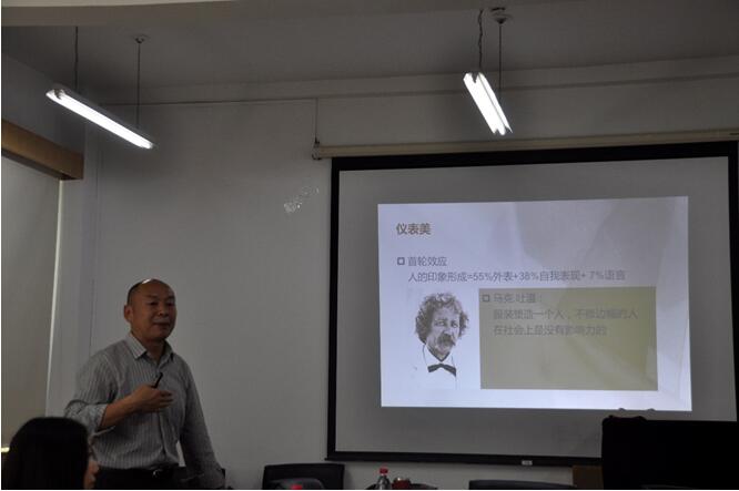 讲座开始前,公司员工工作办公室主任王志梅老师简要介绍了主讲人柴庆春副教授,柴老师目前主要讲授商务基础,国际企业管理等课程,曾在著名贸易公司从业15年,从事商务谈判、项目管理等工作,在职场礼仪方面有着丰富的经验。