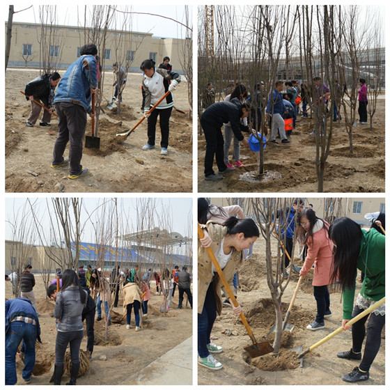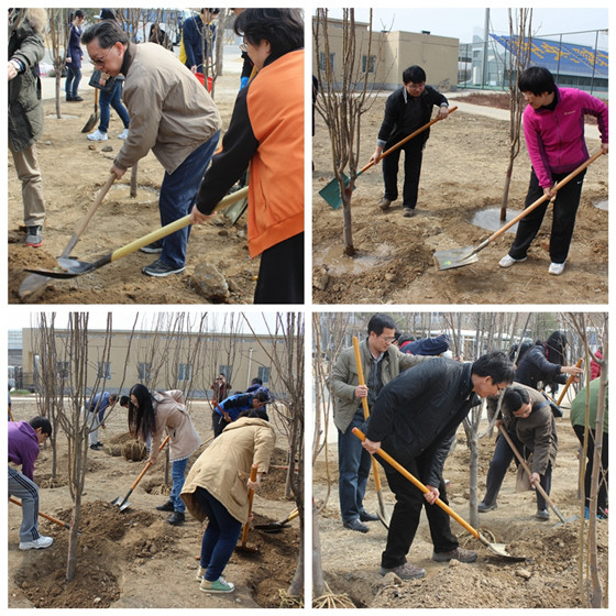 三月的北京风和日丽,万物复苏。在活动现场,参与植树的师生党员们通力合作,干劲十足,刨土、植树、固定、浇水,大家不怕累,不怕脏,深挖坑,实培土。植树过程虽不复杂,但师生们耐心细致的对待每一棵树苗,树苗是否放直了,土不能培得太紧,浇水要浇透等等,“十年树木,百年树人”,植树如同育人,正直的开端,扎实的基础,树苗才会长成参天大树。经过半个多小时的劳动,师生共同植下了40株西府海棠树苗。
