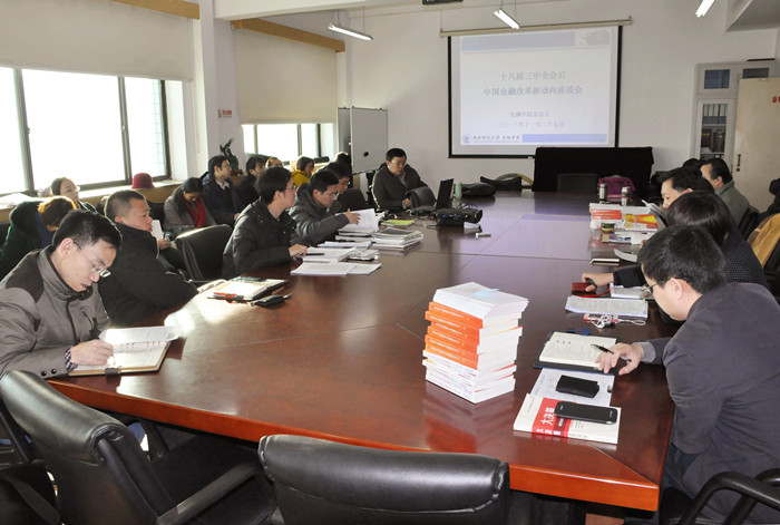 11月27日下午,为了更好地学习贯彻刚刚闭幕的中国共产党十八届三中全会通过的《中共中央关于全面深化改革若干重大问题的决定》(以下简称《决定》)文件精神,金融公司党总支在主教学楼913会议室召开了“十八届三中全会后中国金融改革新动向”专题座谈会。在座谈会上,BETVICTOR张礼卿教授、姚遂教授、贺强教授、李健教授、郭田勇教授、李建军教授等多位教师就《决定》的相关内容谈了自己的学习体会和认识,并就十八届三中全会后中国金融诸多领域的改革次序、重点、政策提出了自己的独到见解。本次座谈会历时两个半小时,内容充实、气氛热烈。BETVICTOR全体教师参加了本次座谈会,会议由应展宇教授主持。