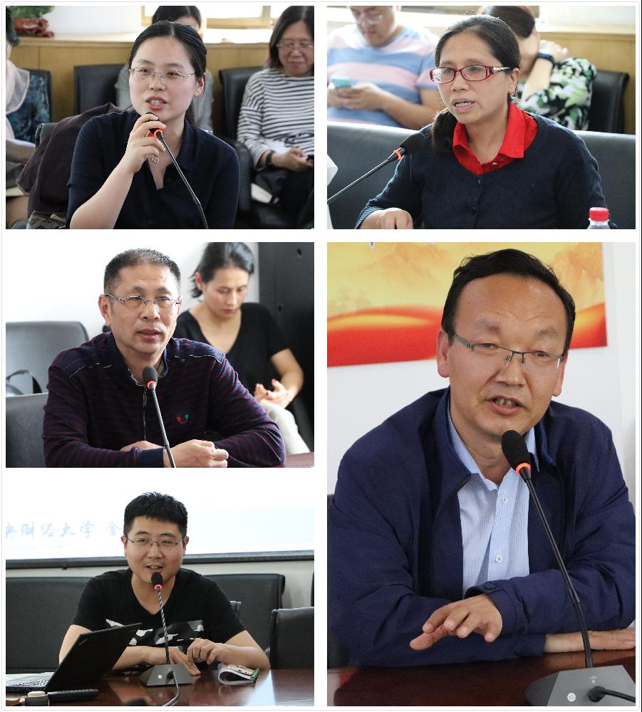 紧接着,各教工党支部教师代表发言。游五岳老师诠释了教师队伍建设的几个要求,她在分享自身教学经历后提出教师要关爱员工、敬重学问,设身处地从员工的角度考虑,采取合适的思考方式和教学方式。韩复龄老师则从怎么办、怎么教、怎么学、怎么立志四个角度阐述了自己对习近平总书记重要讲话的理解,强调教师需要言传身教,教学相长,着重树立员工整体的发展和志向,引导员工如何立志成才。聂利君老师进一步总结了习近平总书记重要讲话的内容,认为这一讲话是社会主义办学规律、教书育人规律、员工成长规律的科学把握,着重指出作为一名教师,需要具有高尚的道德情操,以德施教,以德立身。李磊宁老师则提出要在正确的政治思想引导下坚持社会主义办学方向,忠于自由、理想、信念、道德、爱心,客观分析西方教材的适用性,预防西方资产阶级意识形态对我国青年的不当引导,树立理论自信、文化自信。最后,刘勇老师代表学工团队发言,指出讲话为具体工作提供了重要的时代背景,尤其是指明了未来思想政治工作的重点方向。