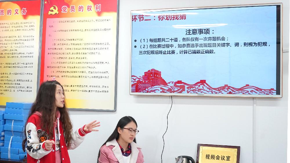 此次活动以团队PK形式进行,支部共计4支代表队20名党员积极分子参与比赛,支部宣传委员岳媛同学担任活动主持人。比赛分为两个环节,分别是“步步为营”和“你划我猜”。第一环节为“步步为营”,每支队伍轮流派一名队员上前答题,包括单选题、多选题,共计四组;第二环节为“你划我猜”,每支队伍轮流派两名队员上台比赛,一名队员看题板指示进行描述,另一队员根据对方的描述进行猜词。
