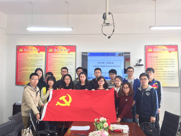 2017年10月19日,2017级研究生第一党支部在丁香园1号楼301“党员之家”会议室举行了第一次主题党日活动。党日活动以“防范金融风险”为主题,重点就金融机构如何开展党建活动防范风险进行了学习讨论。活动由赵志桦副书记主持。