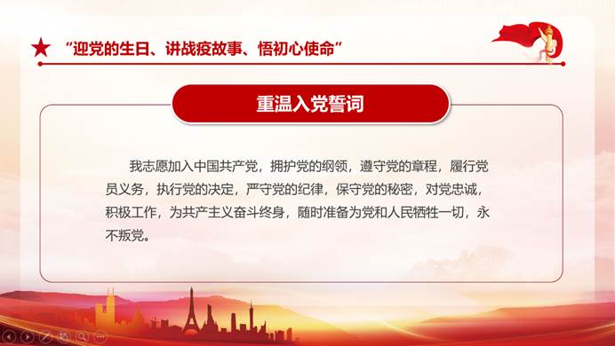 通过此次“迎党的生日、讲战疫故事、悟初心使命”线上主题党日活动,支部成员们深刻认识到了青年一代身上背负着的民族使命与民族希望。“心有所信才能远行,心有所想才能有所成就”。面对新的常态,面对如今的不确定性,没有人可以脱离,所以无论我们身处什么位置,我们都应该始终保持初心,这样才能始终向着党旗飘扬的方向,大步前行!