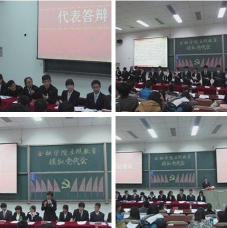 11月21日下午,BETVICTOR于沙河校区主教218成功举办了BETVICTOR主题教育之模拟党代会。出席模拟党代会的有BETVICTOR团总支书记李菊老师、10级辅导员谢海燕老师以及由大一大二各班同学组成的金融1班、金融2班、金工1班、金工2班以及国金五个代表团、评委团、记者团和观众。