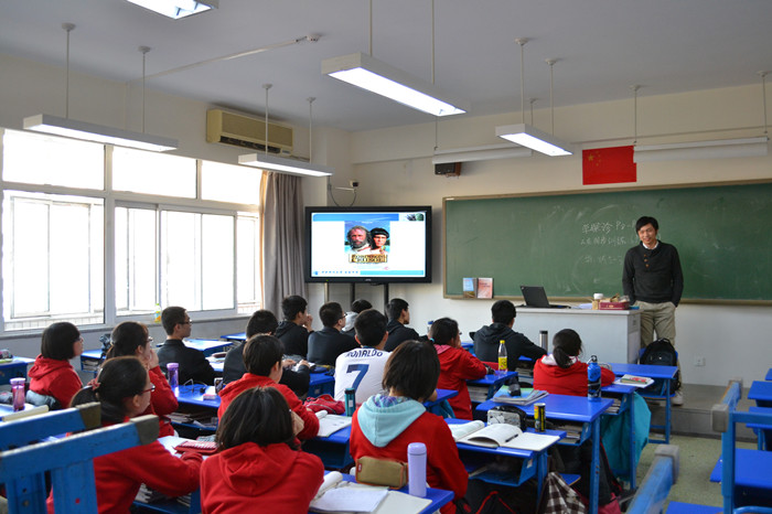 为培养党员先进性,发挥党员的模范带头作用,增强党员的责任感与奉献精神,2012级党支部在北师大附属实验中学开设经济学选修课,为党支部成员提供展现自我和服务奉献的平台。2014年3月5日,党支部书记刘勇老师与廉昊宇、王顺龙等同学一同前往北师大附中,进行第一堂课的讲授。