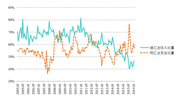 2005年汇改之后,人民币汇率弹性日益增强,汇率波幅扩大,波动频率加快,因此微观经济主体面临的外汇风险更加凸显和常态化。在经济全球化浪潮中我国出口不断扩大,跨国交易频繁,外汇风险也逐渐引起了企业的关注。过去人民币单边升值时,企业主要目标是人民币升值风险,所以进行了大量远期结汇操作。2015年以来,汇率波动增加,更多企业开始重视前期外币负债敞口的对冲,因此外汇市场上远期购汇额大幅上升,远期结汇额出现下降。