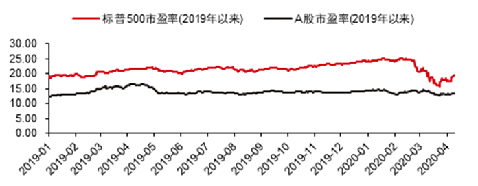 图3: 标普500与A股指数市盈率对比