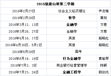 唐山班2016年春季学期总课表