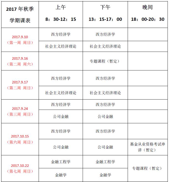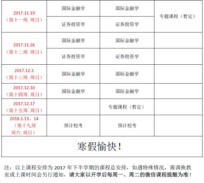 北京班2017学年秋季学期总课表